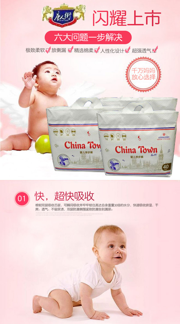 采用全芯體吸收層,不斷裂,不起坨,貼身綿柔,配合科學化的產(chǎn)品設計不僅讓尿液吸收速度加快更令吸收量大幅度提升到了800ml。極致熱風底膜,超過10000個透氣孔,透氣舒適。親膚透氣底膜,良好的透氣性的PE膜,形成有效的縱向對流快速導出廢氣和濕氣,沒有紅屁屁,讓寶寶的皮膚盡情的呼吸。360°雙層立體防側漏,寶寶怎么動都不怕。