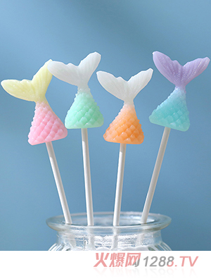 米唐たき海洋小分隊棒棒糖-魚尾馬卡龍哈密瓜橙子草莓葡萄多種口味兒童小零食
