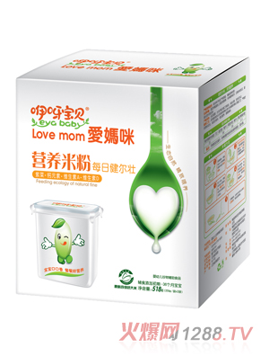 愛(ài)媽咪雙倍益生元醇香肉粉配方營(yíng)養(yǎng)谷粉是南昌咿呀寶貝食品有限公司新上市的嬰兒輔食,科學(xué)配比大米、小米、燕麥、玉米、薏米、牛肉和鱈魚(yú),葷素互配,動(dòng)植物蛋白互補(bǔ),對(duì)寶寶的健康成長(zhǎng)更有幫助。