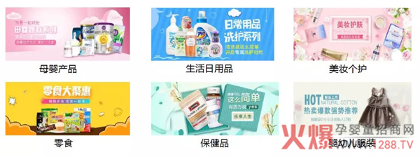 孕嬰童用品:嬰幼兒洗護(hù)用品、尿褲濕巾、奶瓶奶嘴吸奶器、孕期產(chǎn)后用品、護(hù)膚品等;
